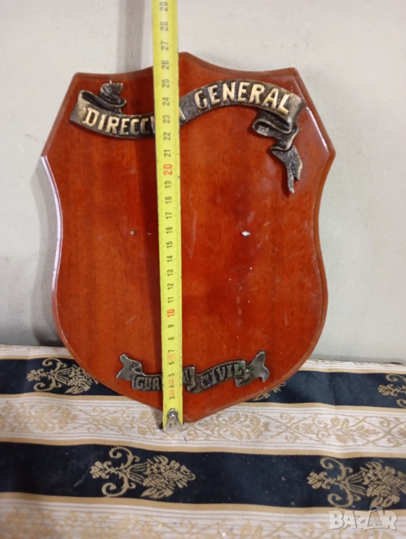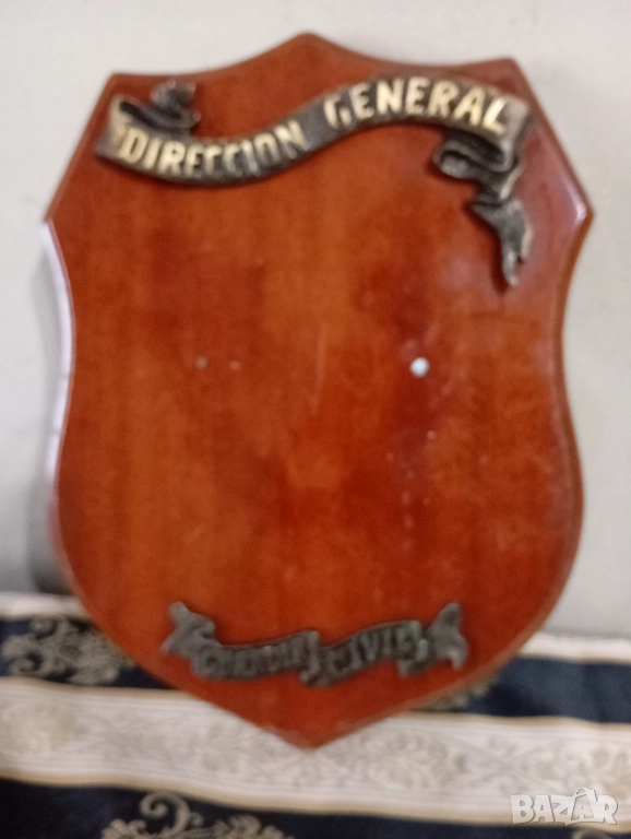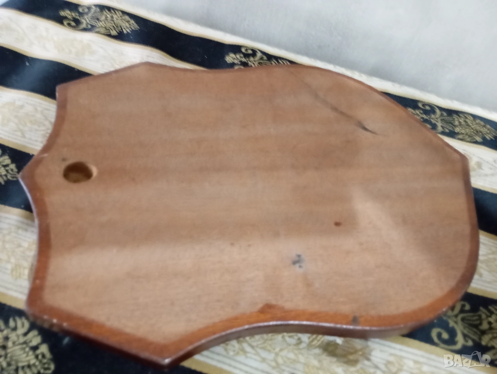 Дървена основа с метални апликации.Може да се сложи трофей или декорация.