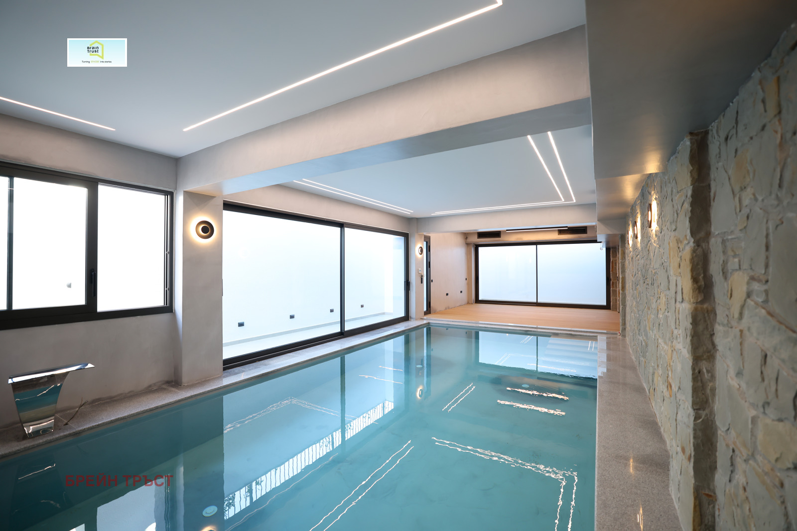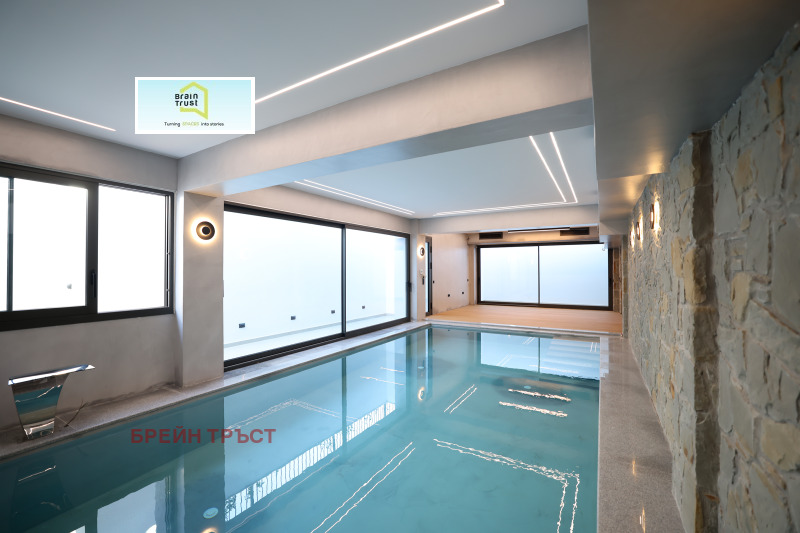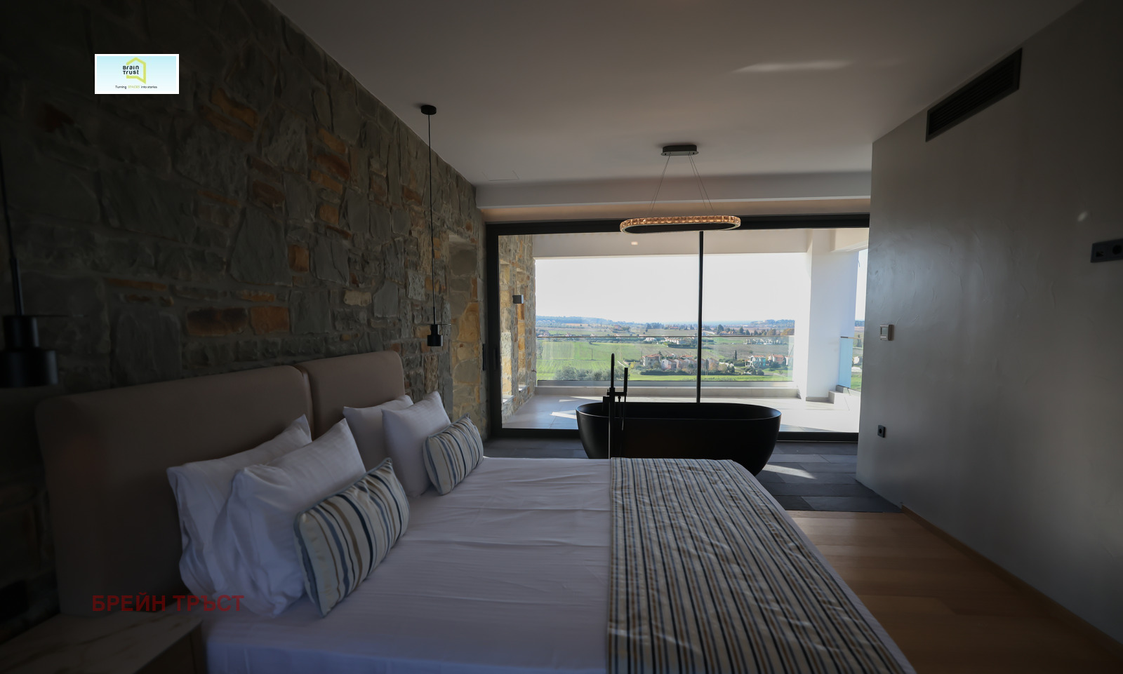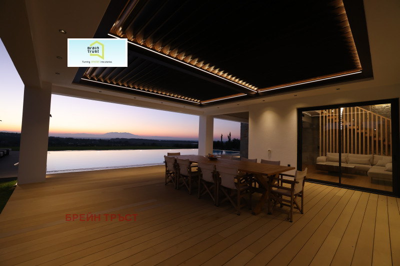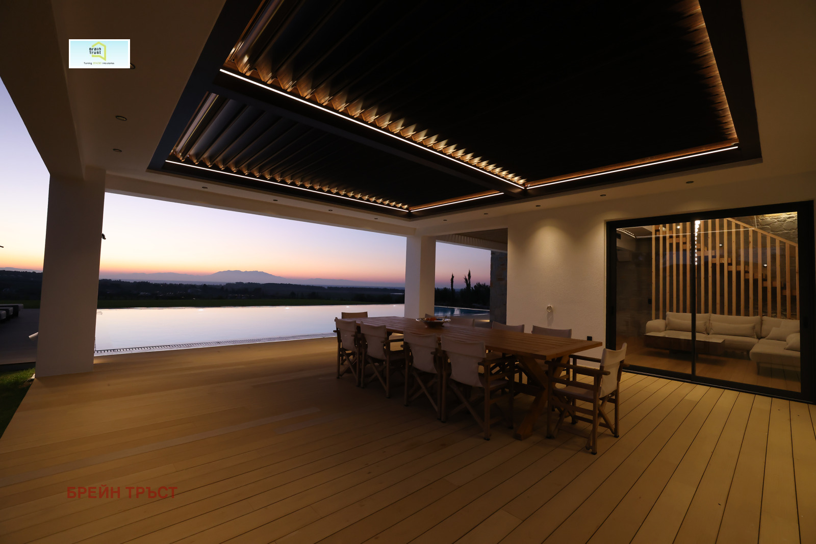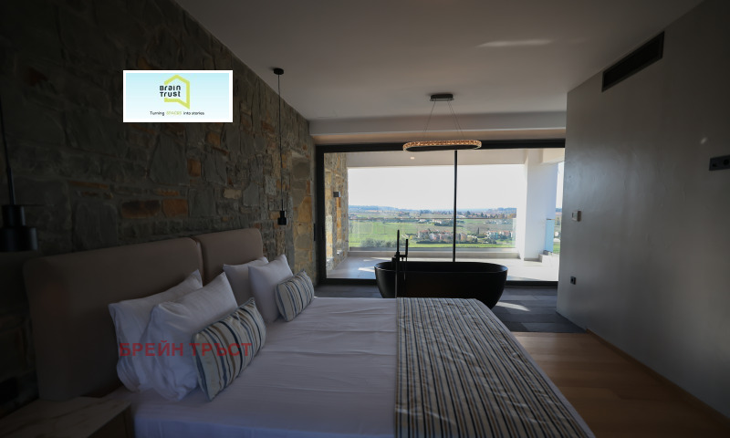 Brain Trust Ви предлага луксозна къща от 500 кв.м., разположена на две нива (сутерен и партер), върху просторен парцел от 5000 кв.м. в Касандра. Резиденцията разполага със седем главни спални, осем бани, една тоалетна, две кухни и три дневни. Осигурява осем външни паркоместа. Построена през 2025 г., имотът предлага енергийна ефективност от най-висок клас (A+) с автономно отопление чрез термопомпа, регулиране на отоплението ниво по ниво, климатизация, топлоизолация и звукоизолация. Оборудвана е с алуминиеви рамки и дървени подове. Вилата е в изключително състояние и се радва на открита гледка към морето, планините и околната зеленина. Светла, елегантна и прясно боядисана, тя предлага изискано жилищно изживяване. Допълнителните екстри включват енергийно ефективна камина, складово помещение, вътрешно стълбище, частен басейн, озеленена градина, охранителна врата, видеодомофон, алармена система, видеонаблюдение, противопожарна система, пожарогасители, сателитна връзка, морава, зрели дървета и частен сондажен кладенец.