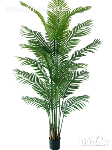 Декоративната палма с 220 см е подходящо допълнение към модерен интериор, офис пространство и търговски обекти. Листата са детайлно оформени, а конструкцията позволява лесно разперване за по-обемен и естествен вид. Не поддържа поддръжка и запазва свежия си цвят през цялата година.
