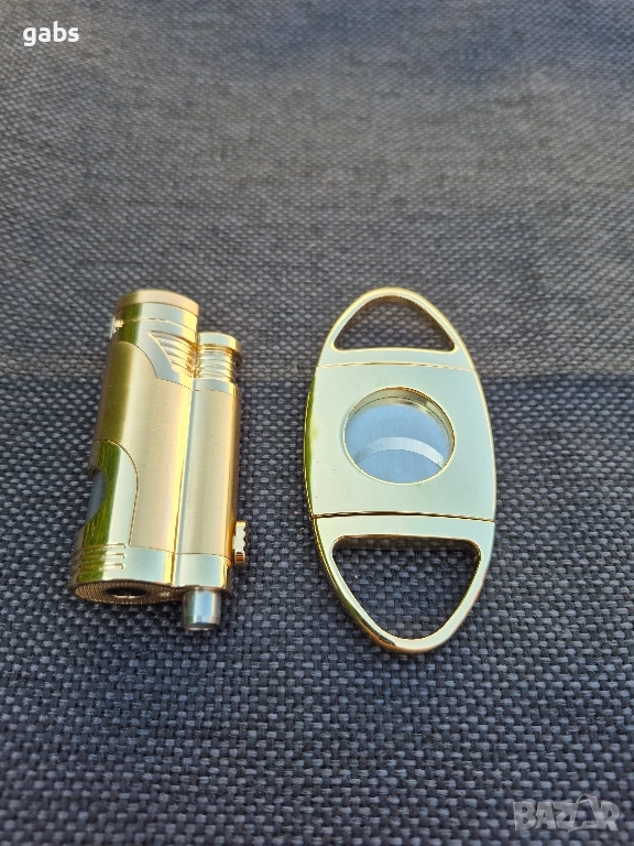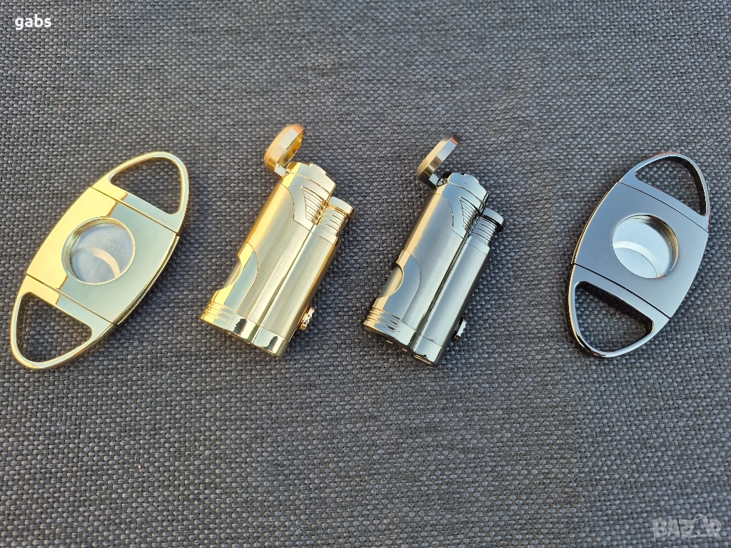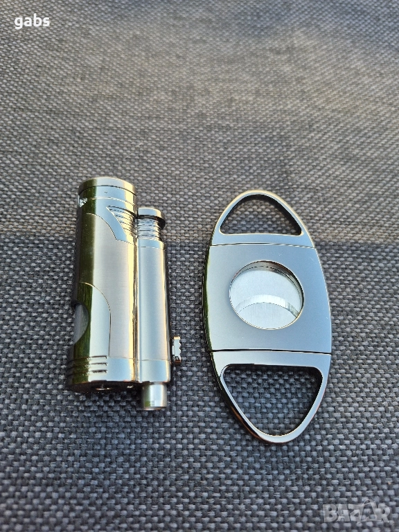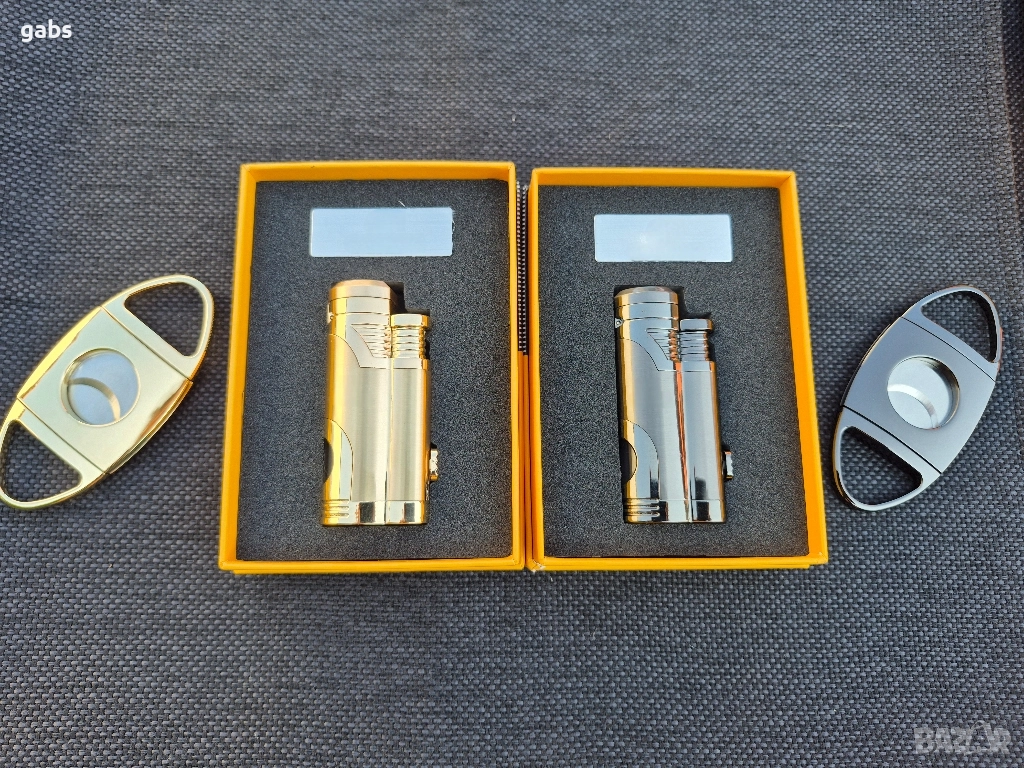 Стилна запалка за пури с лого и подарък резачка.Предлага се в два цвята.Идеален подарък за любителите на пури.