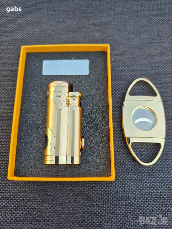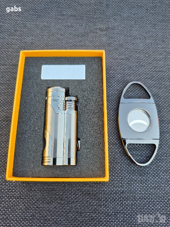 Стилна запалка за пури с лого и подарък резачка в подаръчна кутия