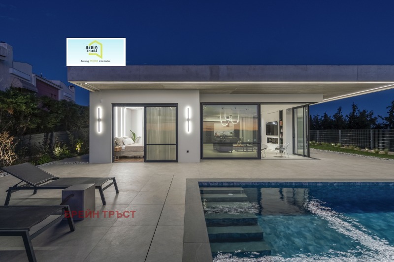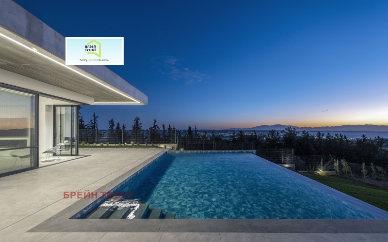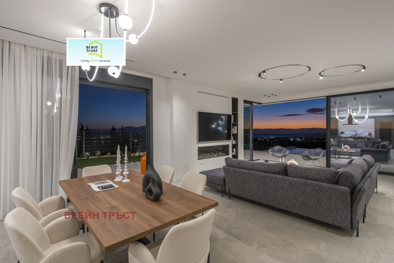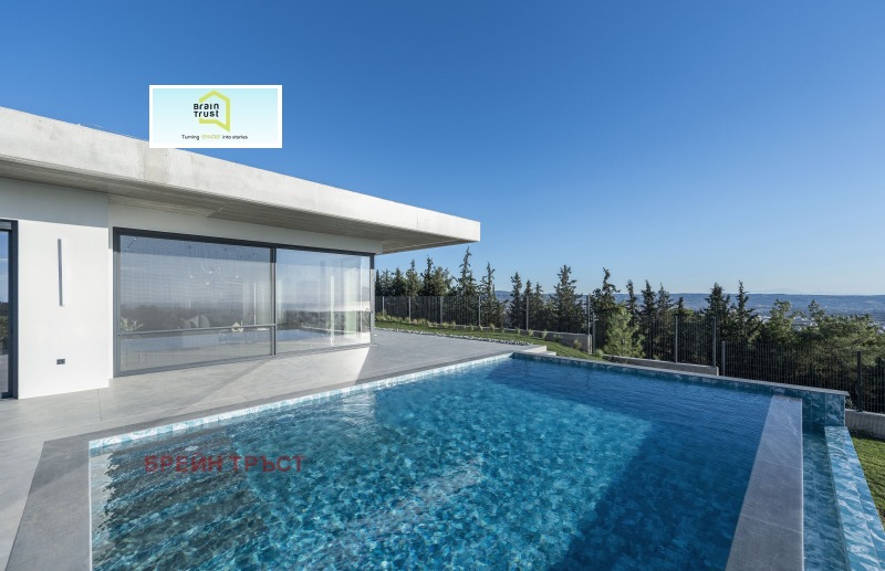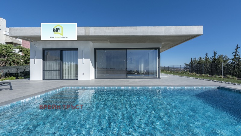 Brain Trust продава чисто нова луксозна триетажна резиденция от 450 кв.м., разположена върху парцел от 2000 кв.м. в Панорама, предлагаща безпрепятствена морска гледка и западна ориентация. Имотът се състои от 5 спални, 4 бани, 1 тоалетна, кухня и хол. Разполага с частен басейн, озеленена градина, складово помещение и 3 закрити паркоместа. Отопление с индивидуална термопомпа и отоплителна система на ниво, високоефективни алуминиеви рамки, електрически щори. Година на построяване - 2024