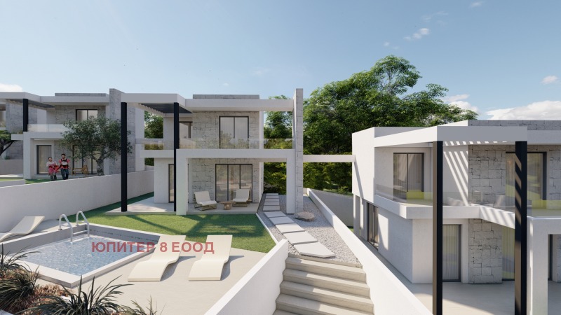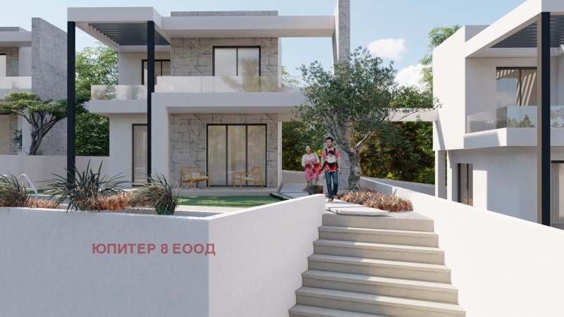 Проектираните къщи са с РЗП по 120 кв.м., ориентирани с гледка към морето и със следното разпределение: дневна с кухненски бокс, баня с тоалетна, самостоятелна спалня на първо ниво, второ ниво: две самостоятелни спални, голяма тераса и баня с тоалетна. Плосък покрив- тераса. Огледи всеки ден. 0878928703, 0888237530