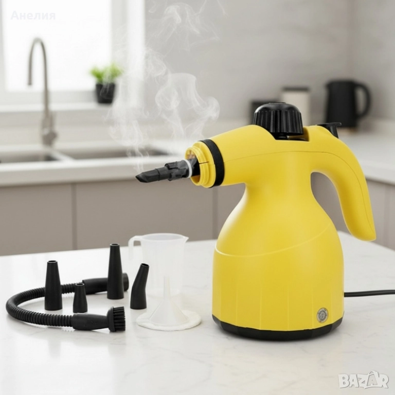 Ръчната парочистачка DF-A001 е решение, когато мазнини, фуги и наслоявания не се махат с обикновено почистване. С мощност 1000W и пара до 100°C тя разгражда мръсотия, дезинфекцира и премахва бактерии без химикали. Работи до 20 минути с резервоар 250 мл и налягане 3,2 бара. Компактният размер (25×15×22 см) и множеството дюзи я правят универсална за кухня, баня, прозорци, тапицерии и автомобил. В комплекта: мерителна чаша, фуния, удължителен маркуч, извита дюза, кръгла четка, дълга дюза, стъклокъргачка, универсална дюза и кърпа-капачка. Работи на кабел и има защита от прегряване и заключване на бутона за пара. Идеален уред за бързо, безопасно и ефективно почистване у дома.