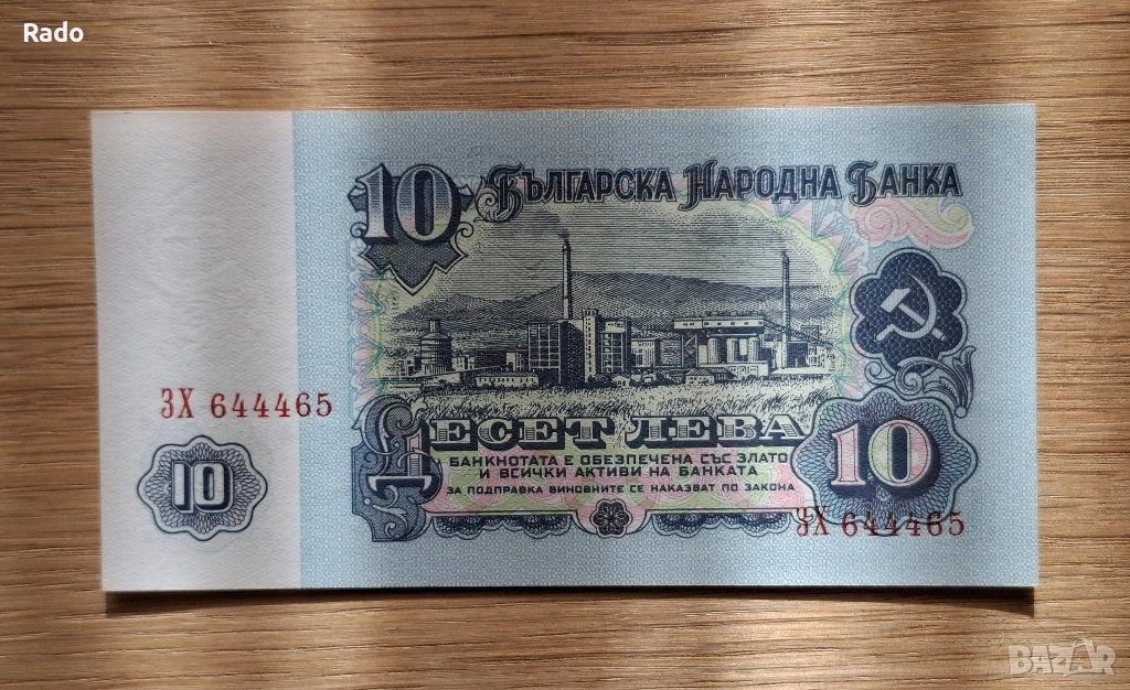 Непрегъвана Банкнота (UNC) 10лв 1974г с хубав номер (3Х644465) → Обява 52539156