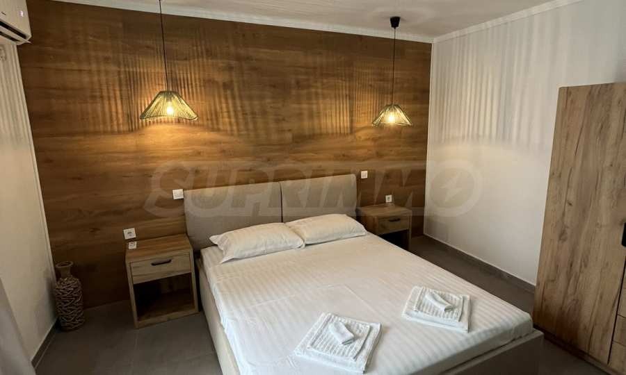 Имотът е с обща площ от 67 кв.м, ситуиран на 1-ви етаж с прилежаща веранда от 15 кв.м и частична морска гледка към залива.