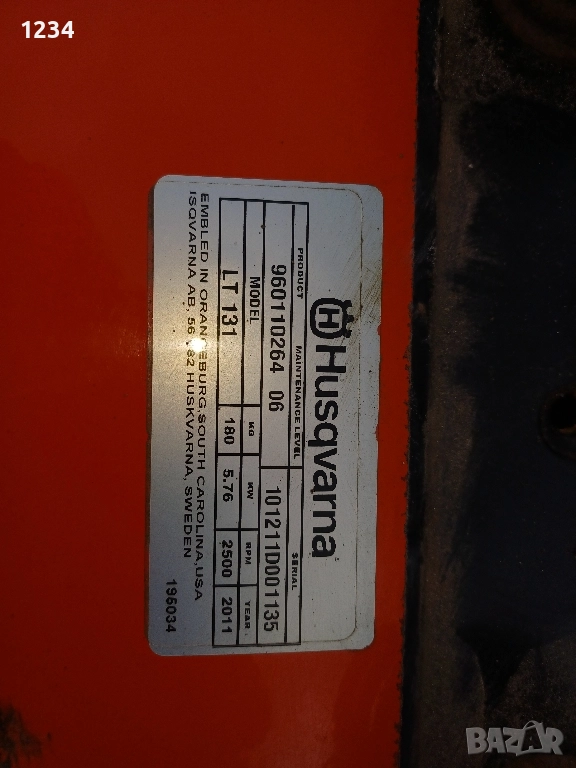 Тракторна косачка HUSQVARNA LT131, снимка 1 - Градинска техника - 52540107 Тракторна косачка HUSQVARNA LT131, снимка 2 - Градинска техника - 52540107 Тракторна косачка HUSQVARNA LT131, снимка 3 - Градинска техника - 52540107 Тракторна косачка HUSQVARNA LT131, снимка 4 - Градинска техника - 52540107 Тракторна косачка HUSQVARNA LT131, снимка 5 - Градинска техника - 52540107 Тракторна косачка HUSQVARNA LT131, снимка 6 - Градинска техника - 52540107 1/6