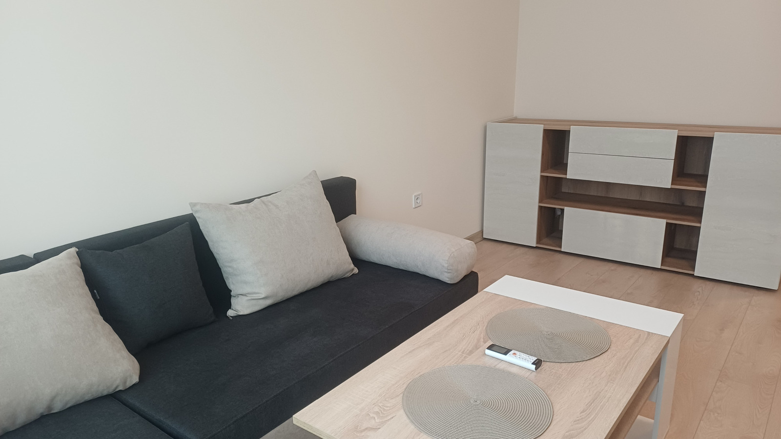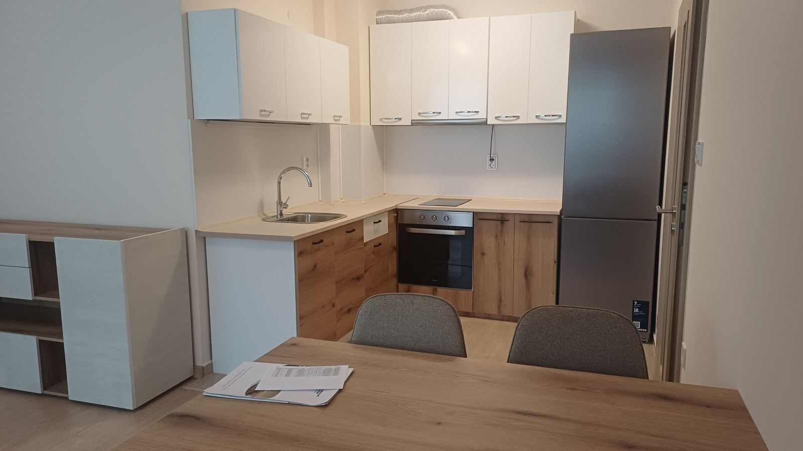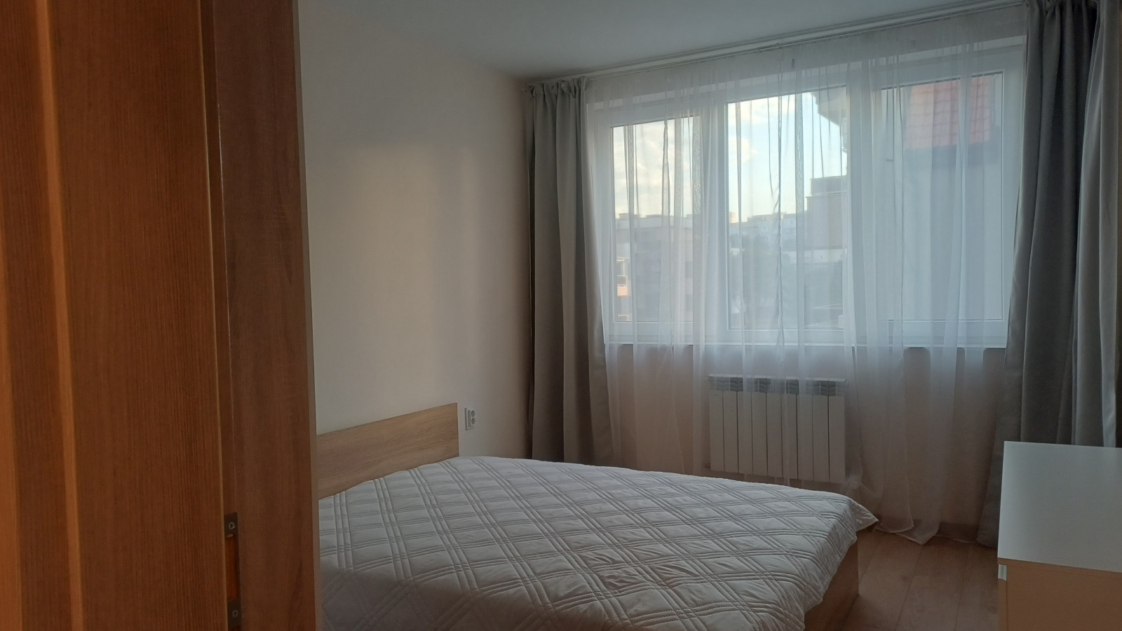 град София, Люлин 9, ул. Търново, 65 кв.м, 4-ти ет. от 6, ТЕЦ, Чудесен светъл и слънчев нов, напълно обзаведен двустаен апартамент до поликлиника, на спирка на тролей 6, на 10 мин пешеходно отстояние от метростанция Люлин, на 15 мин от метростанция Сливница. Нова монолитна сграда от 2023 година с идеални общи части, с асансьор, заключване с чип. Предлага се просторно и уютно жилище, в което още не е живяно, на тихо, спокойно и комуникативно място, близо до зелени площи, магазини и ателиета за услуги. Разпределение: дневна с кухненски бокс, стая, баня с WC, обща лоджия (към дневната и спалнята); Състояние: отлично!Външна дограма-стъклопакет PVC, с комарници; Входна врата-масивна; Подови настилки паркет (дневна), гранитогрес (коридор, лоджия), фаянс и теракота (баня с WC); Непреходен апартамент в отлично състояние, с качествени довършителни работи. Обзавеждане: съвременно и модерно - с напълно нови мебели и уреди. Има климатик. Спален комплект с гардероб; разтегателен диван, холна маса,секции, шкафове, вградени ел.уреди. Цялото обзавеждане и оборудване е в гаранционен срок. Без домашни любимци и за непушачи - това са предпочитанията на собствениците. Отдава се дългосрочно. Възможно е паркомясто срещу допълнителен наем.'Бокар недвижими имоти', офис 'Неофит Рилски', тел.0887 09 70 73, 0888 31 58 48;тел.: 02/910 10 10,