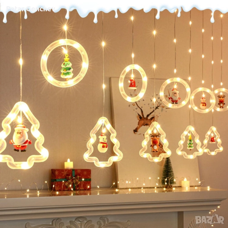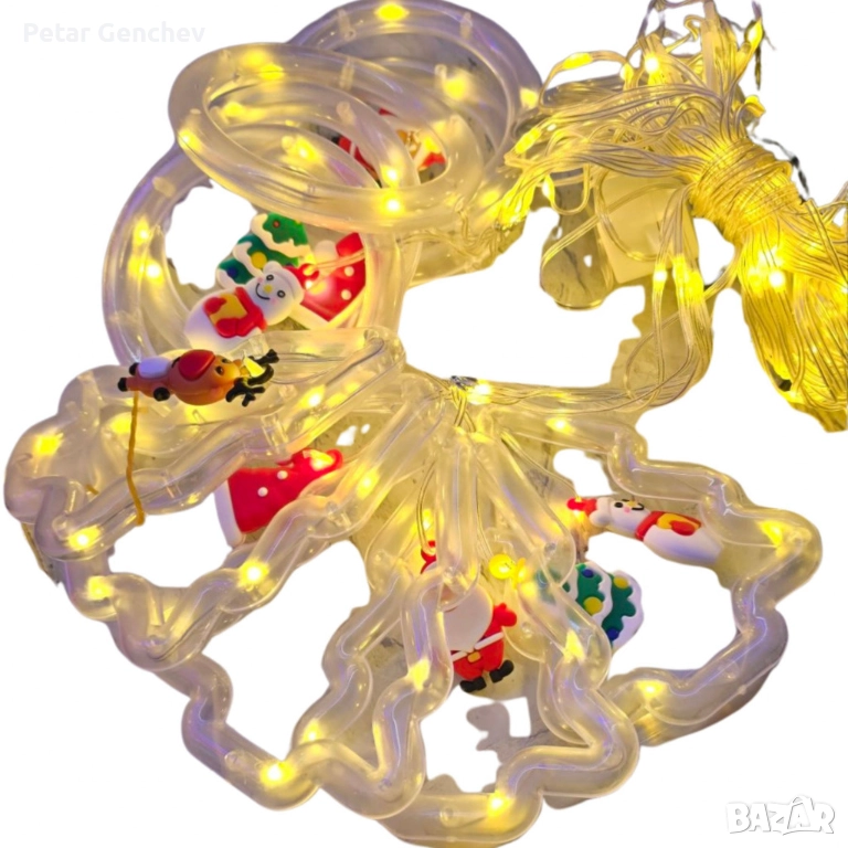 Светещ коледен гирлянд с рингове и малки коледни фигурки;