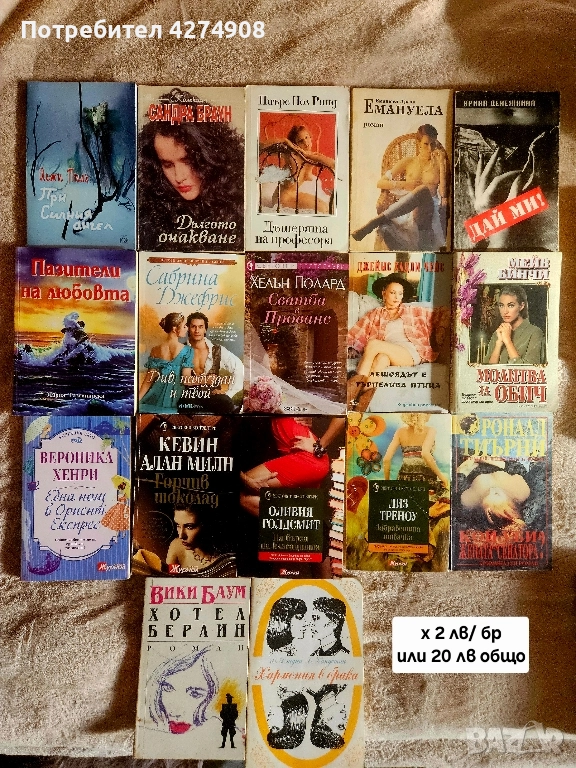 Евтини любовни и криминални романи!, снимка 1 - Художествена литература - 52540329 Евтини любовни и криминални романи!, снимка 2 - Художествена литература - 52540329 Евтини любовни и криминални романи!, снимка 3 - Художествена литература - 52540329 Евтини любовни и криминални романи!, снимка 4 - Художествена литература - 52540329 1/4