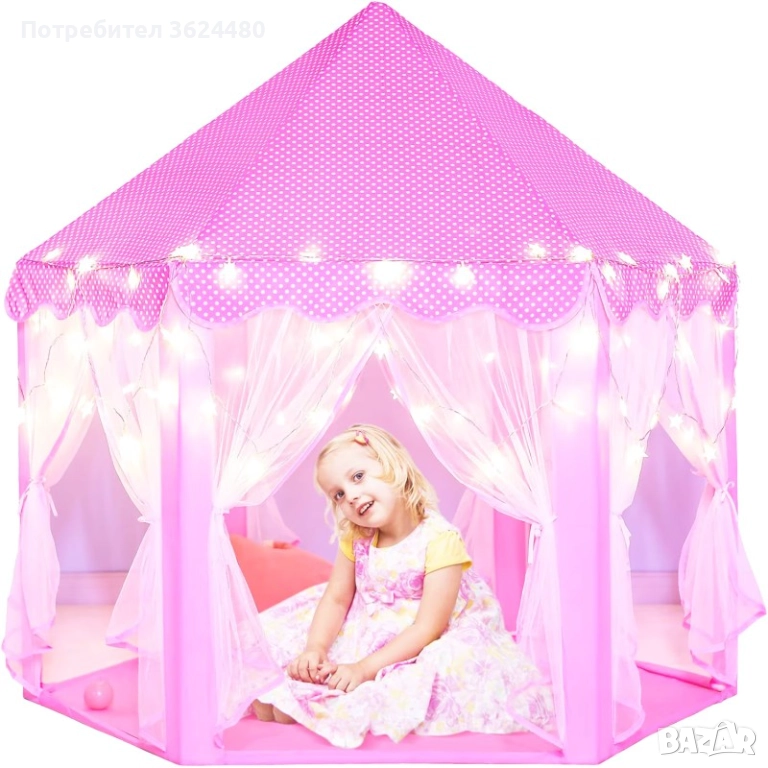 Палатка Замък за Момиче (140x135 см) - Перфектната Детска Къща за Игра