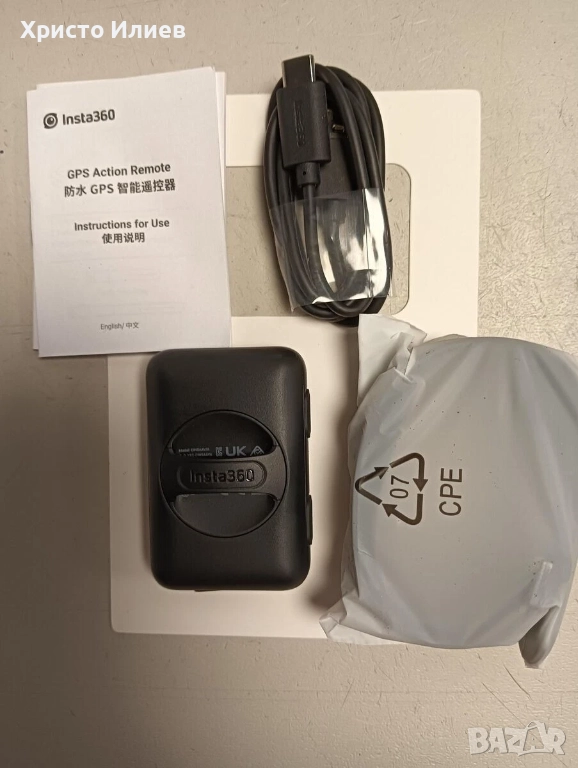 Устройството Insta360 GPS Action Remote се използва с екшън камерите от серията Insta360 ONE и Insta360 GO 3S/GO 3, за да можете да ги управлявате дистанционно. Бихте могли да го носите на китката си подобно на смарт часовник или да го прикрепите към рамката на велосипеда. Дистанционното ви дава възможност за отдалечено контролиране на настройките на камерата. Свързва се с нея посредством Bluetooth 5.0, която поддържа бърза и стабилна връзка до 20 m. Устройството може да събуди камерата, дори когато тя е изключена.