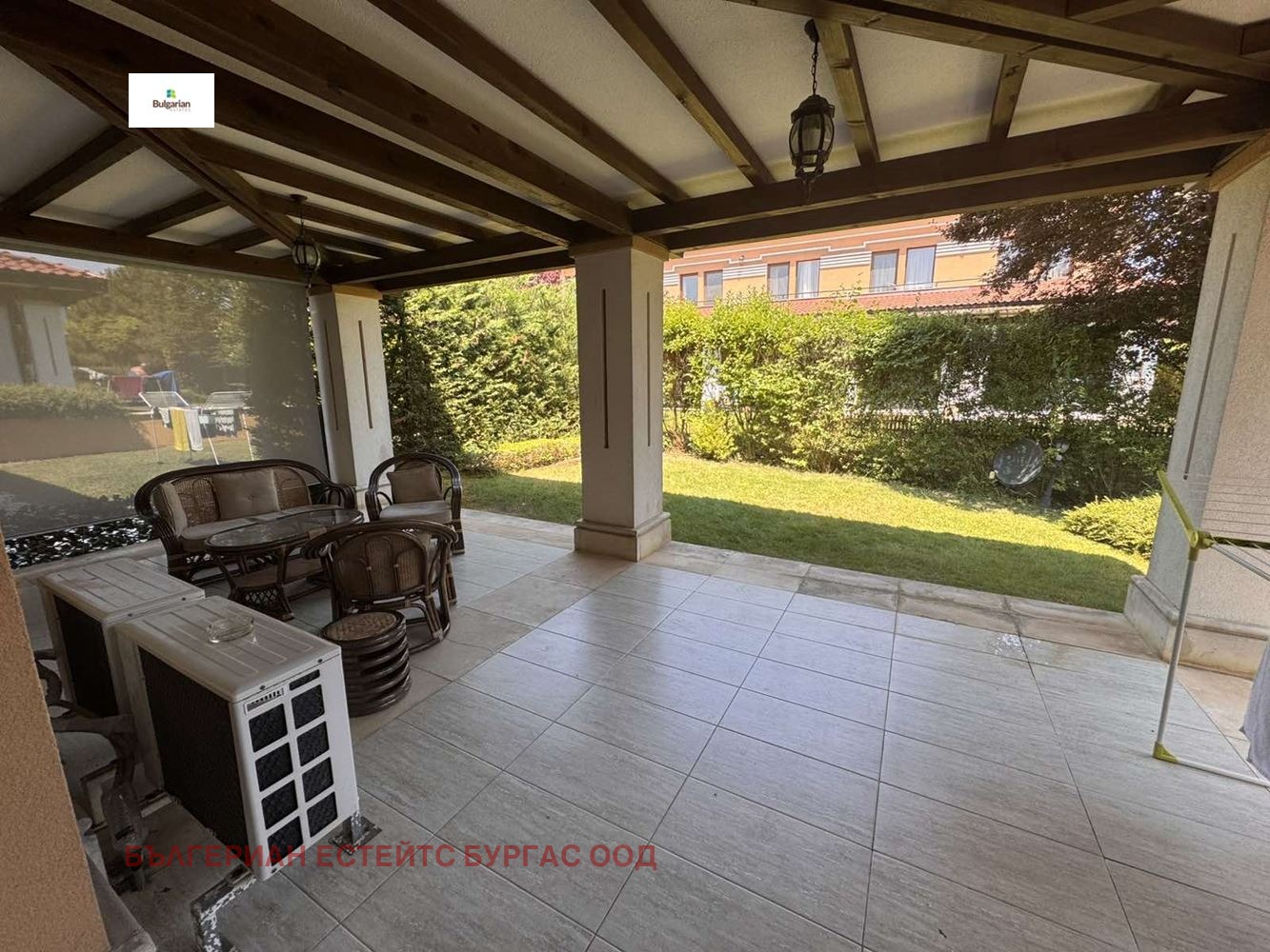 Жилището е с площ от 82.74 кв.м.плюс покрита веранда от 26.82 и озеленен двор от 30 кв.м.Функционално разпределена жилищна площ между просторна дневна с обзаведен кухненски кът и обособена зона за хранене, спалня и баня. Дневната е завършена и обзаведена в светли тонове, с панорамни прозорци, което я прави просторна и светла през целия ден. От дневната има излаз към веранда в богато озеленените градини на комплекса, осигуряваща допълнителна възможност за пълноценен отдих.