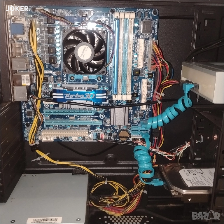 Дъно GIGABYTE GA-880GMA-UD2H Ram 4GB.DDR.3 HDD 320 GB sata CPU AMD Athlon 2 ADX 2500 Вградена графика: Интегрирано графично ядро ATI Radeon HD 4250 с поддръжка на DirectX 10.1, HDMI, DVI-D и D-Sub портове. Dvd записвачка Кутия в добро състояние Дъното нa практика е чисто ново без забележки всичко си работи има инсталиран офис пакет и други програми компютъра работи доста добре.