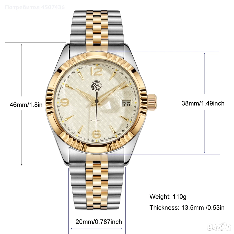 Дебелина на корпуса 13,5 мм Произход на механизма CN (Произход) Ширина на каишката 20 до 24 мм