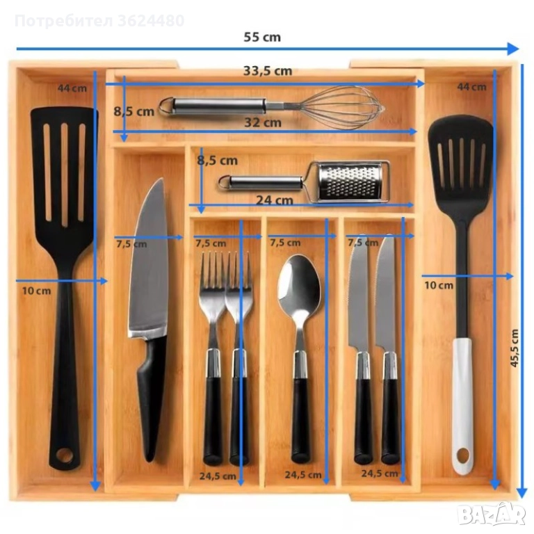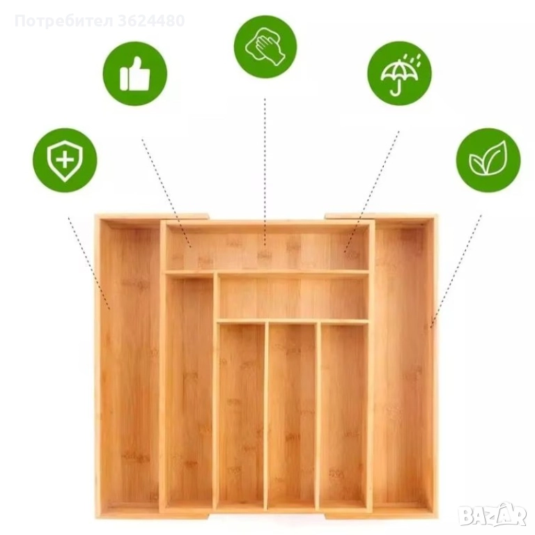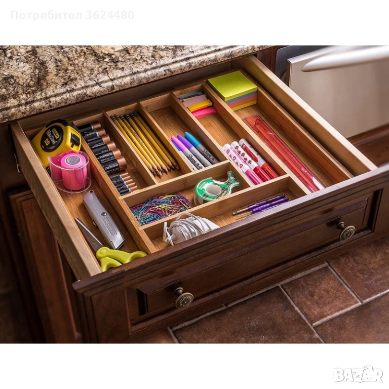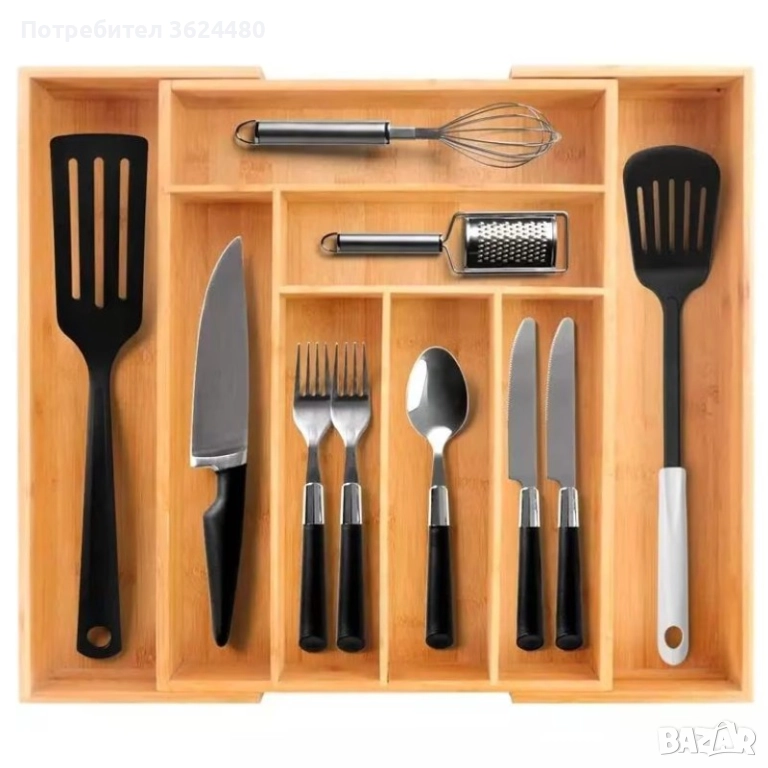 Бамбуков Кухненски Разпределител за Прибори – Разтегателен Органайзер за Чекмедже