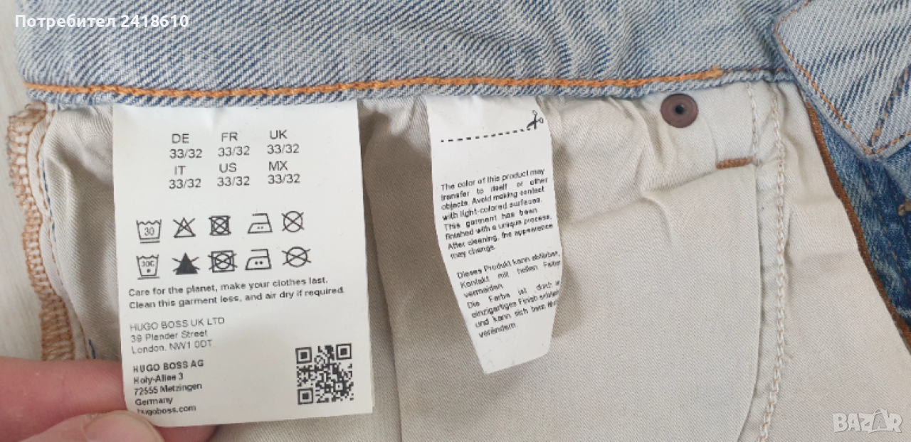 Hugo Boss Onyx Selvedge BO Slim Fit Mens Size 33/32 НОВО! ОРИГИНАЛ