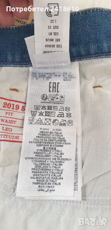 Diesel 2019 D - Struct Slim Fit Made In Italy Mens Size 33 НОВО! ОРИГИНАЛ Мъжки Дънки!