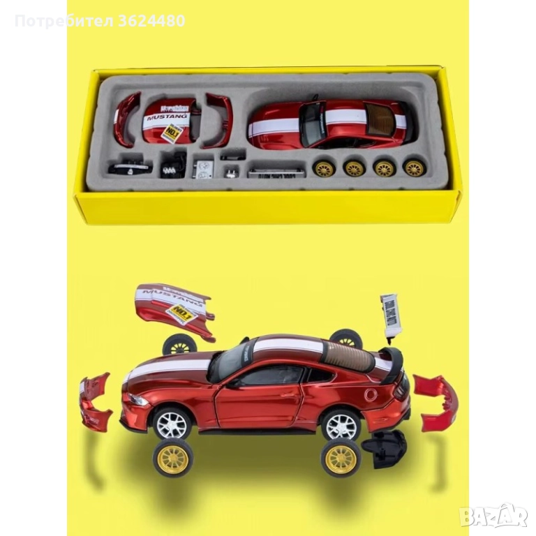 Колекционерски Модел Ford Mustang GT 1/24 - Висококачествена Метална Количка (Червена)
