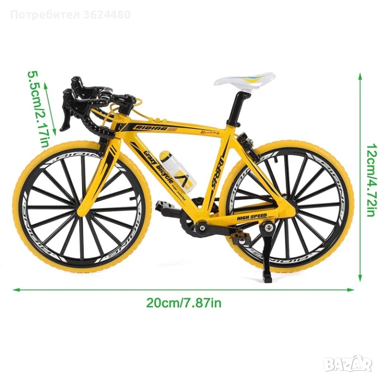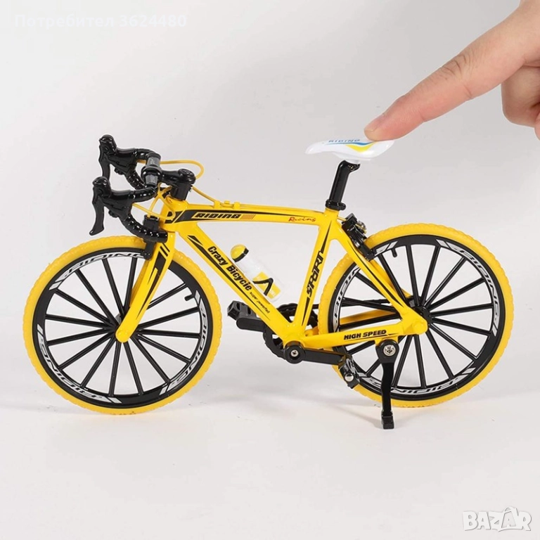 Този жълт метален макет на велосипед (1:10) е идеален подарък за колоездач или колекционер.