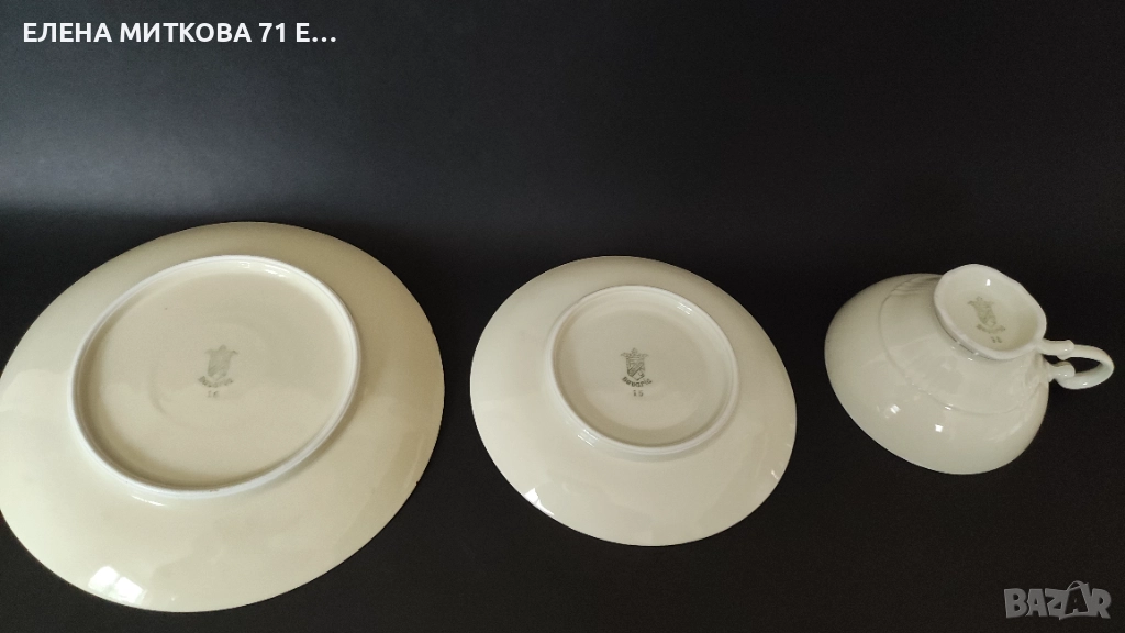 Леко избледняване на канта по края на чинийките и няколко фабрични точици тук там,отразени в цената,но като цяло-красота