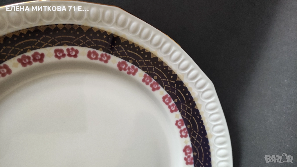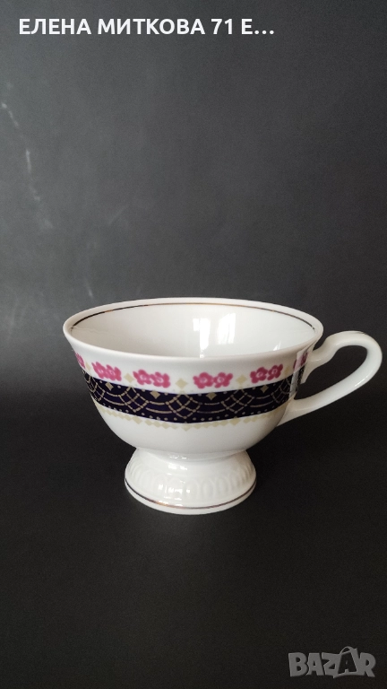 Colditz ГДР един много фин и крехък троен сет за чай/дълго кафе,декориран с "истински кобалт"и лилави цветчета и златно за разкош