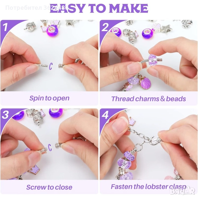 Детски Комплект за Изработка на Бижута (68 Части) - Създай Своите Гривни с Талисмани!