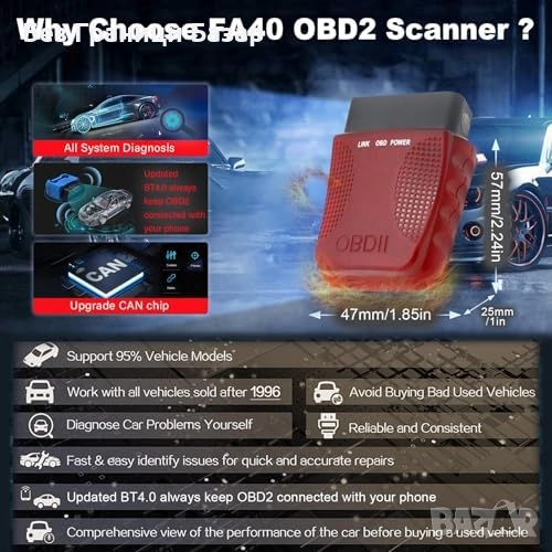 Многофункционален Bluetooth OBD2 адаптер за пълна диагностика