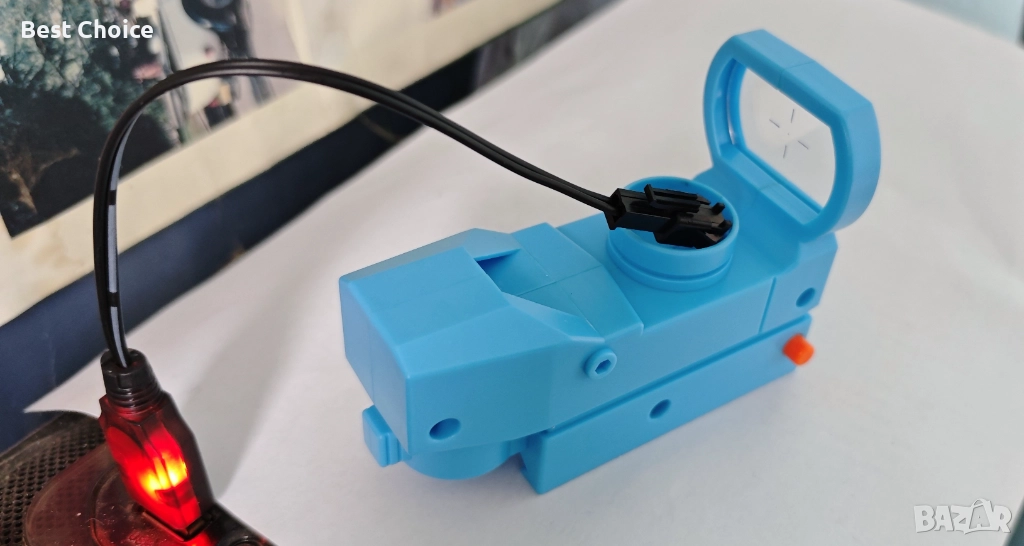 - Захранване: Акумулаторна презареждаема батерия 3.7V със зареждане чрез USB кабел, включени в комплекта.