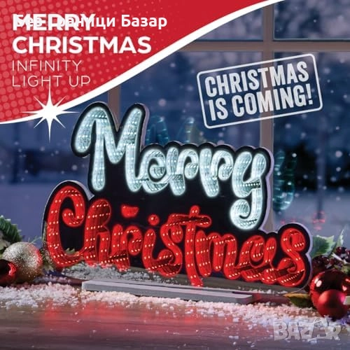 Нова Коледна Светеща Табела Merry Christmas 3D Infinity Дизайн Декорация