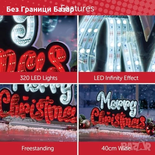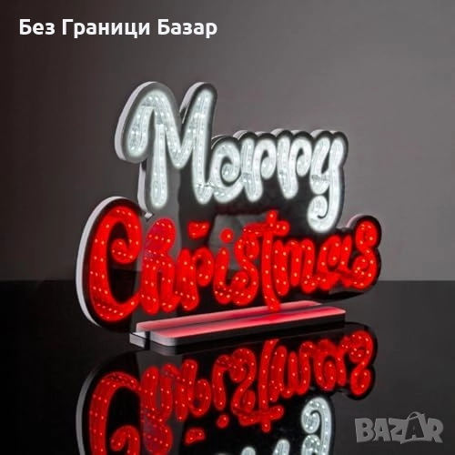 Светещ надпис „Merry Christmas“ с ефектна LED инсталация и огледална дълбочина