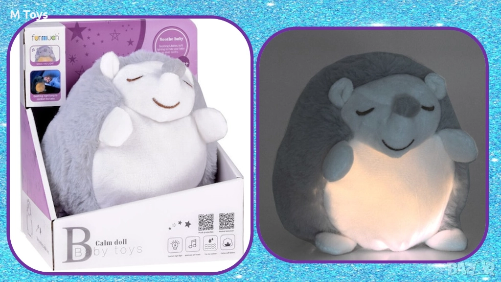 Той излъчва нежна светлина, която създава спокойна атмосфера и помага на детето да заспи по-лесно. Мек, пухкав и много сладък – перфектен за бебета и малки деца!