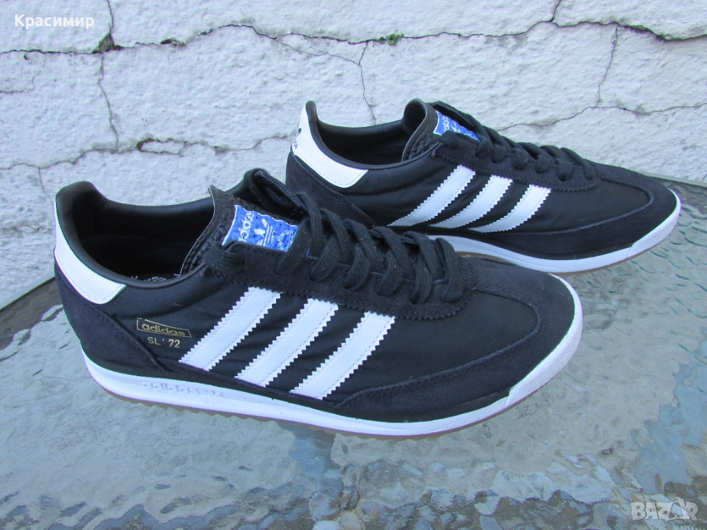 Мъжки маратонки Аdidas Originals SL 72 RS, с елегантен и минималистичен стил. Изработени са от естествена кожа, велур в горната част в комбинация с текстил, като велурените наслагвания добавят дълбочина и текстура на обувката. С междинна подметка от EVA пяна, осигуряваща омекотяване и комфорт, и издръжлива гумена подметка за добро сцепление. Имат комфортна вътрешна част, а плоските връзки елиминират точките на натиск върху свода на стъпалото, осигурявайки добро прилягане. Номер 41 с дължина на стелката 26 см. Произведени в Индонезия. Цената е без коментар.
