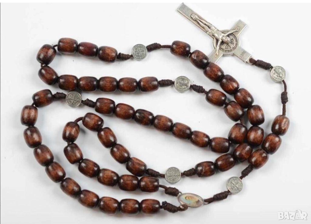 Стара християнска молитвена броеница метал и дърво за да ви пази Бог и закриля  → Обява 52542629