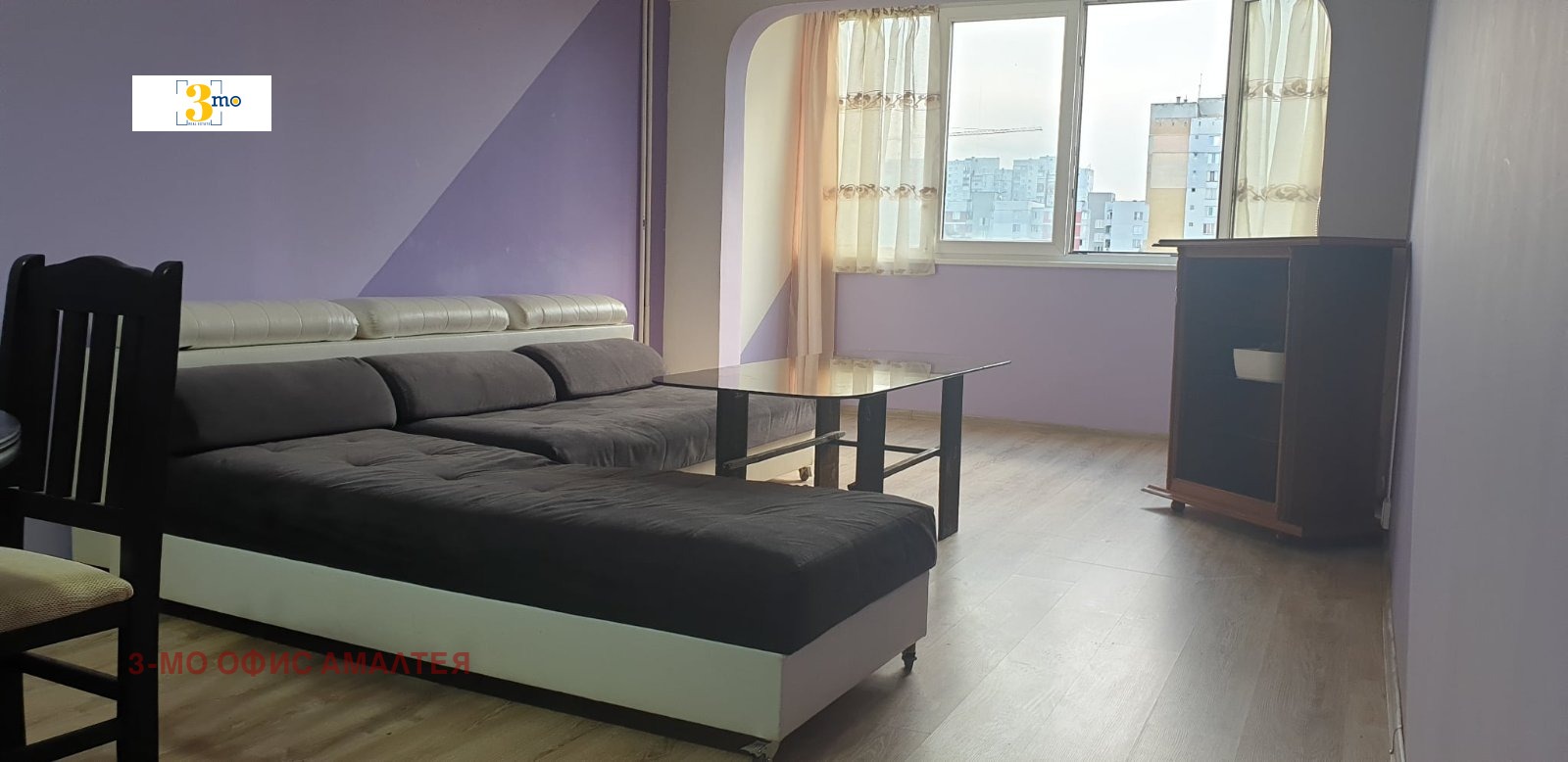 3mo Амалтея предлага на Вашето внимание двустаен преустроен на тристаен непреходен апартамент. Жилището се състои от просторен хол с усвоен балкон, много слънчев с югоизточно изложение. Обширна спалня, към която има също усвоен балкон със северозападно изложение.