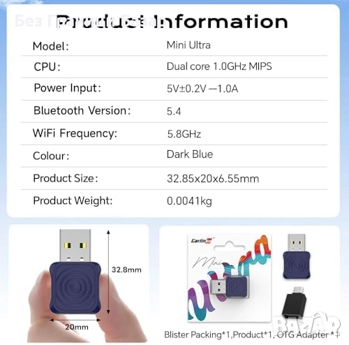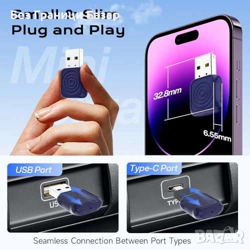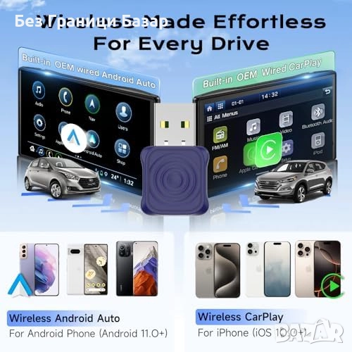 Нов Безжичен адаптер CarPlay и Android Auto USB-A/C Plug & Play за кола