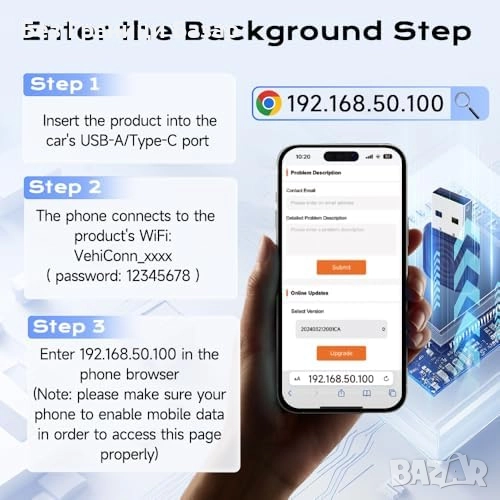 Превръща фабричния кабелен CarPlay или Android Auto в безжичен режим