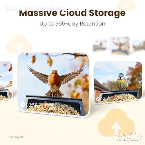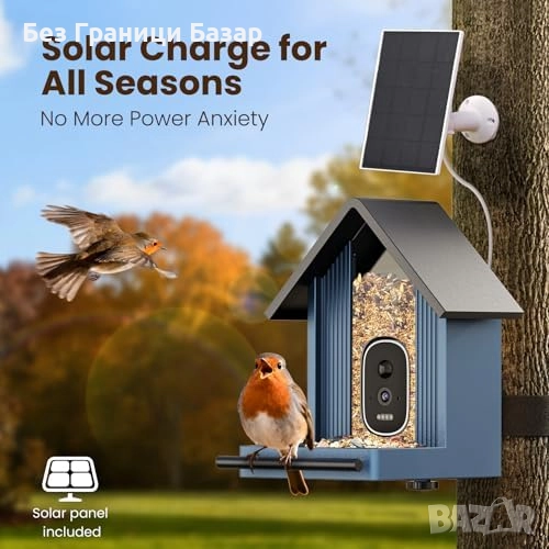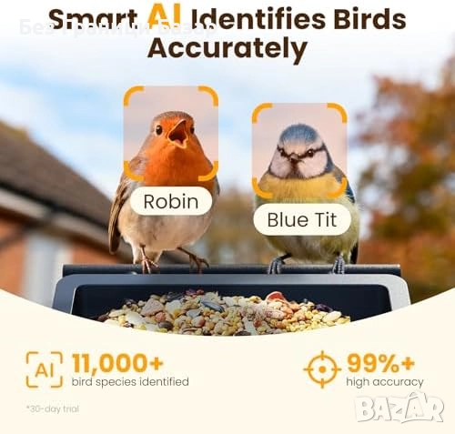 хранилка за птици с 2.5K UHD камера и AI разпознаване на над 11 000 вида птици