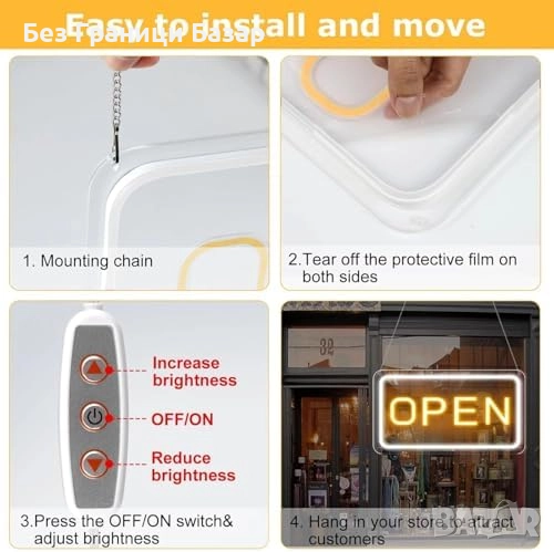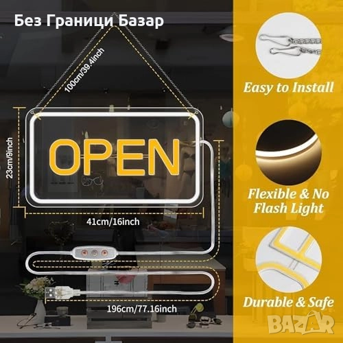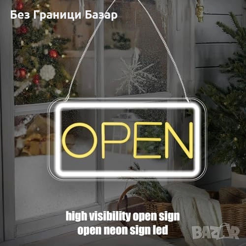 Ярка LED неонова табела „Open“ – видима и през деня и нощта