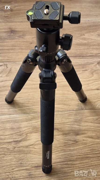 - Функции: Вграден нивелир, бързо освобождаваща се плоча, 4-секционни крака с бързи заключващи механизми, гумени крачета