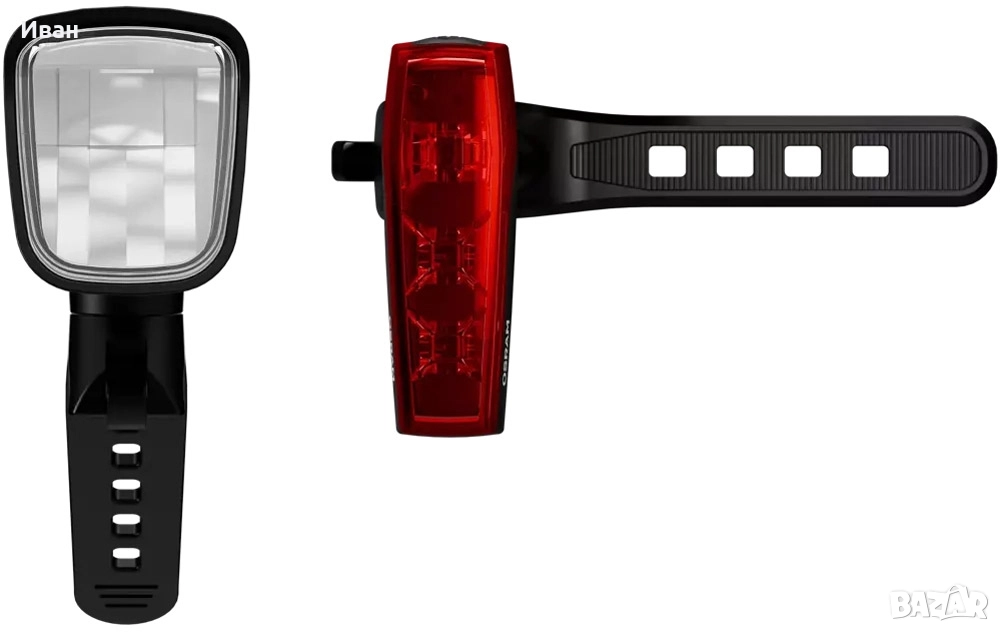 Комплект LED светлини за велосипед (предна и задна) на една от водещите световни марки в осветлението.