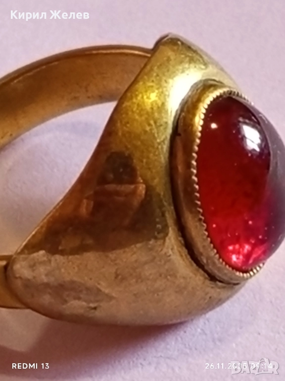 СТАРИНЕН КЛАСИЧЕСКИ ПРЪСТЕН с ГРАНАТ РЯДКО РЕТРО БИЖУ 52307