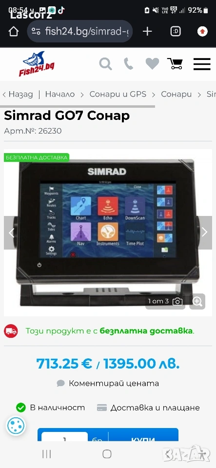 сонари,сонди,картограф Simrad, Garmin,Raymarine 7,9,12 инча → Обява 52544823