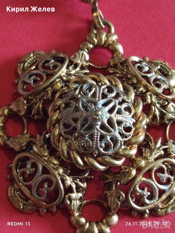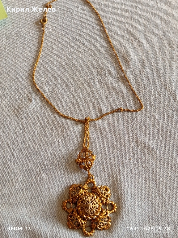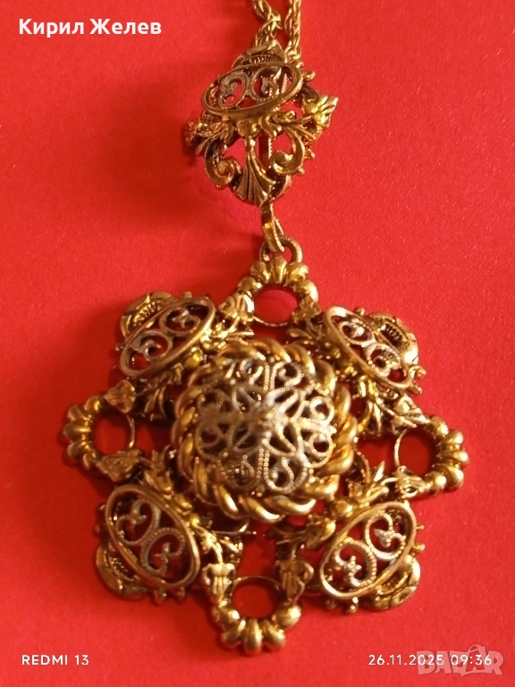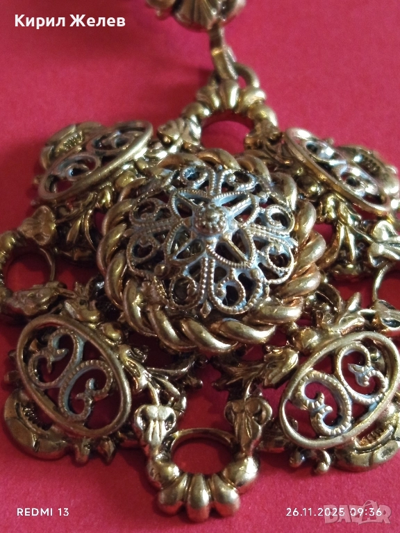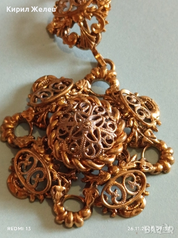 КОЛИЕ СТАРИННО РАЗКОШНО ПОЗЛАТЕНО ФИННА РЪЧНА МАЙСТОРСКА АЖУРНА ИЗРАБОТКА 52321