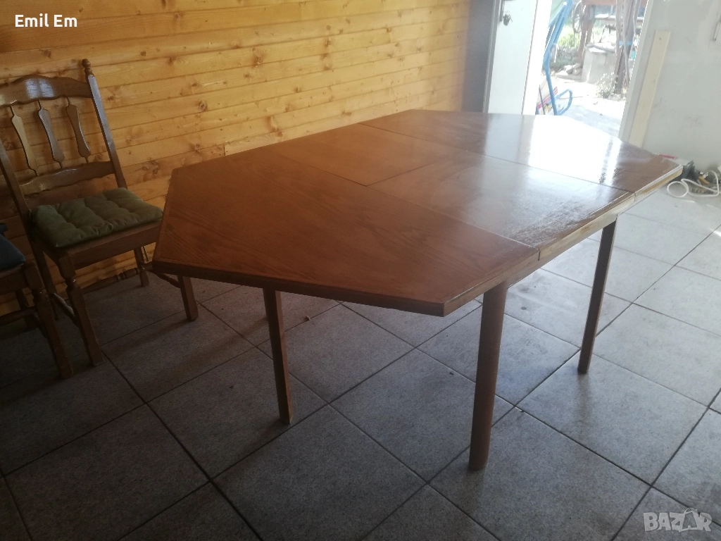 Продавам разтегателна кухненска маса масив. Размери 120 на 120 см. Шестоъгълна. разтегателна маса 190 на 120 см. Височина 74 см. Масата е докарана от Германия.