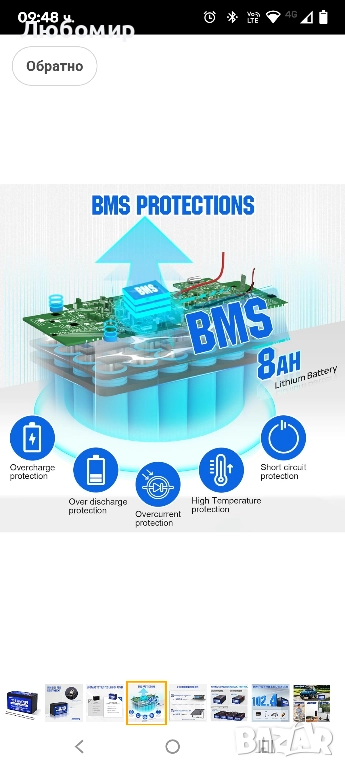 BMS защита: Вградената BMS (система за управление на батерията) предпазва клетката от повреди, като например: презареждане, презареждане, късо съединение и поддържа баланс между клетките на батерията.