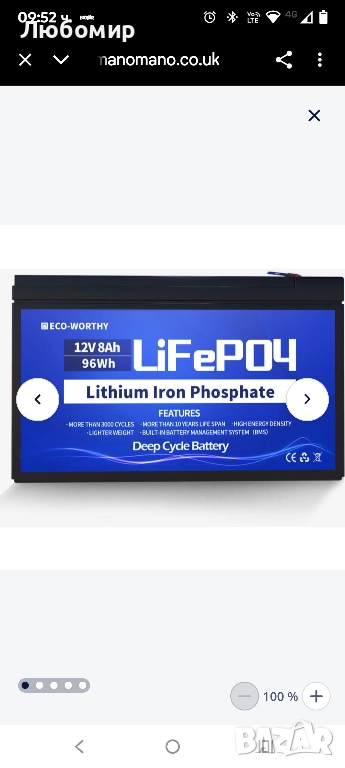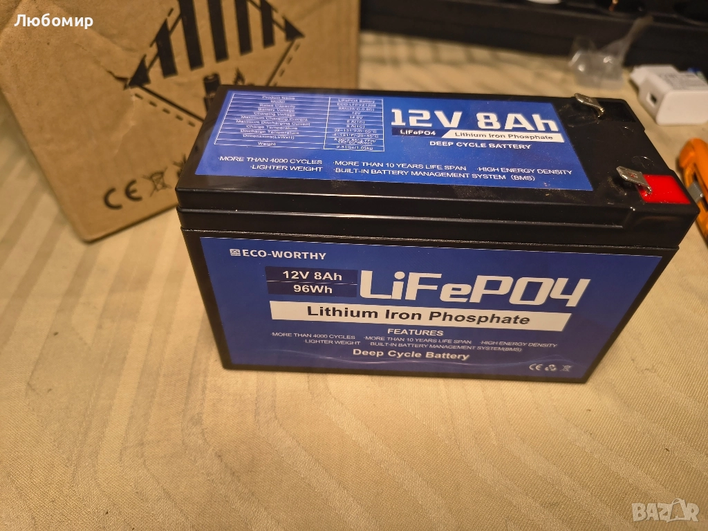 LiFePO4 батерия, 4000+ цикъла литиева батерия с дълбок цикъл и 8A BMS, за соларни системи, сонар за риба, електрически колела, осветление, алармена система.Широко приложение: LiFePo4 литиевата батерия е най-стабилната батерия и е съвместима с кемпери, каравани, морски превозни средства, кемпери, голф колички, ремаркета за инструменти, слънчеви панели или се използва като резервно захранване и др.