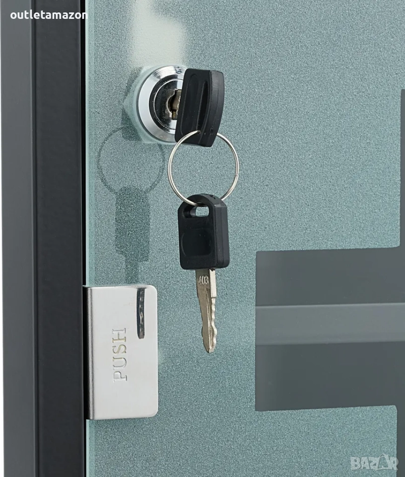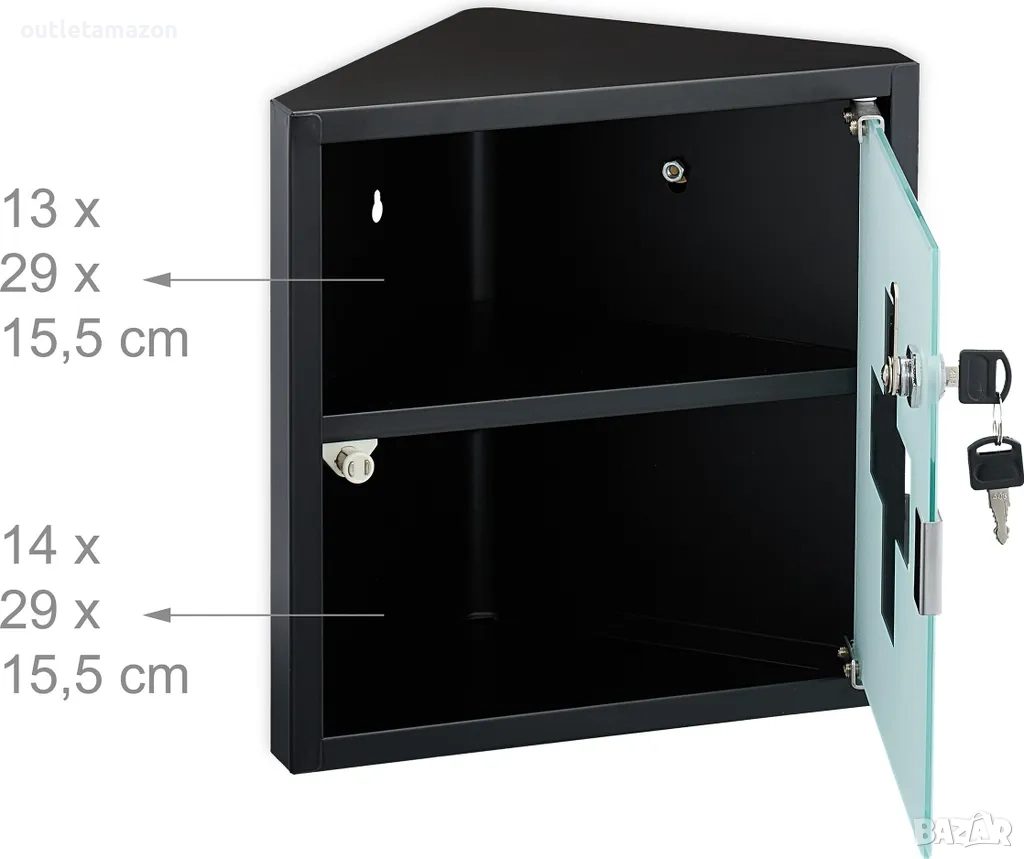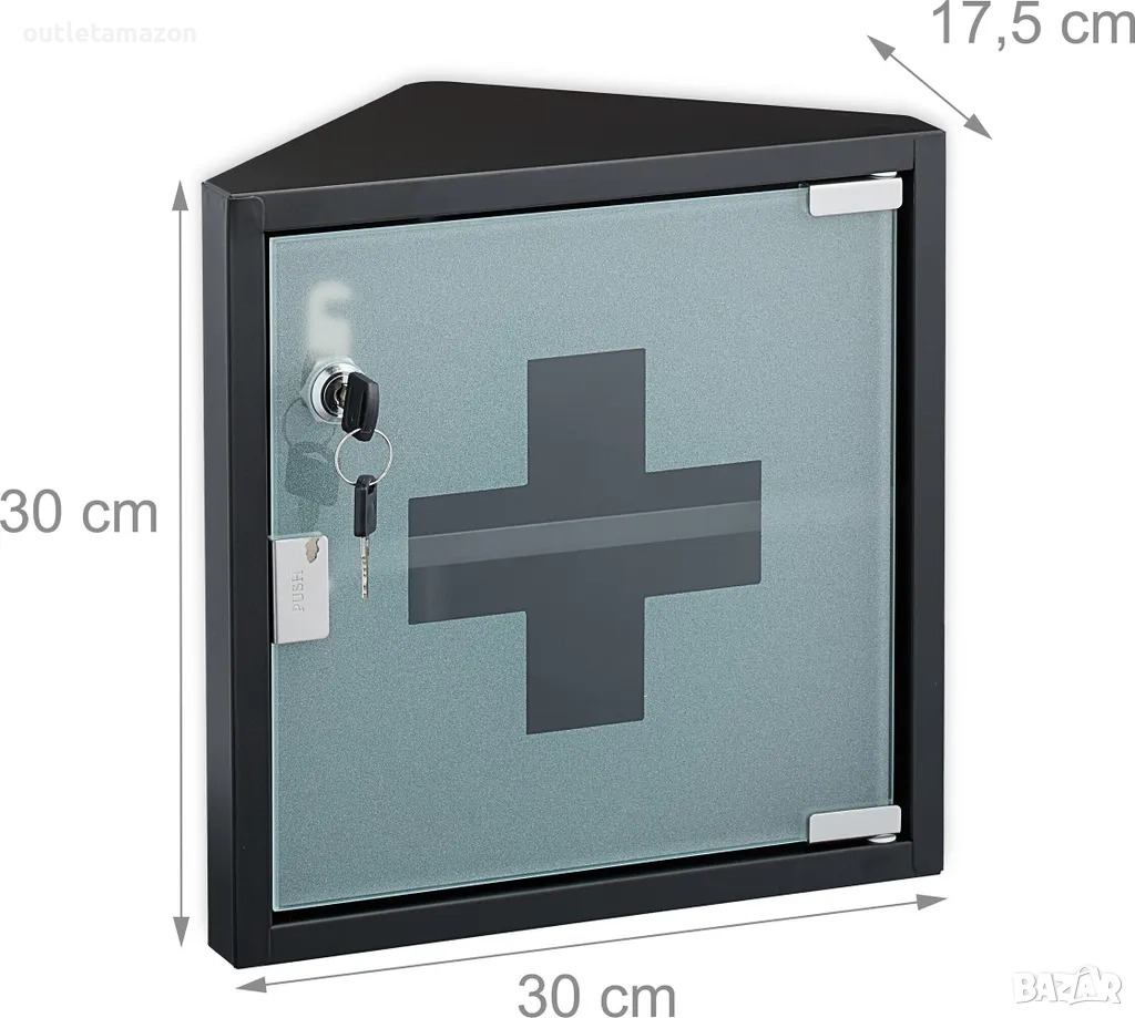 аптечката можете да поддържате домашната си аптека организирана. Двете ѝ отделения осигуряват достатъчно място за спретнато съхранение на лекарства и превръзки. Важни и понякога опасни лекарства са защитени от любопитни деца и неоторизирани лица благодарение на заключващата се врата. Шкафчето за домашна аптечка впечатлява с модерната си комбинация от материали, съчетаващи стомана и матирано стъкло.