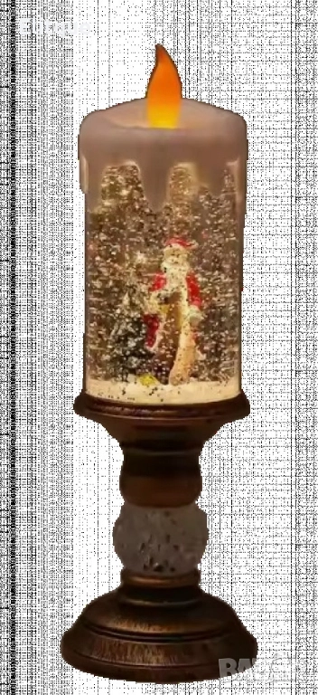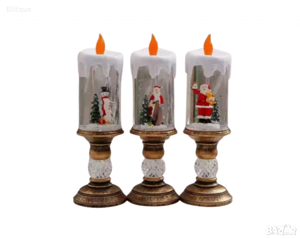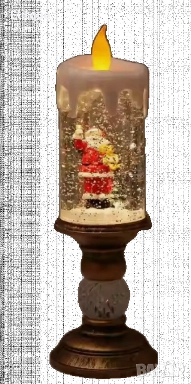Материал: смола и стъкло; LED осветление за дълготрайност и безопасност; Захранване: батерии; Вариант 1: Снежен човек; Вариант 2: Дядо Коледа с чувал; Вариант 3: Дядо Коледа с подаръци; Гаранция: 12 месеца.