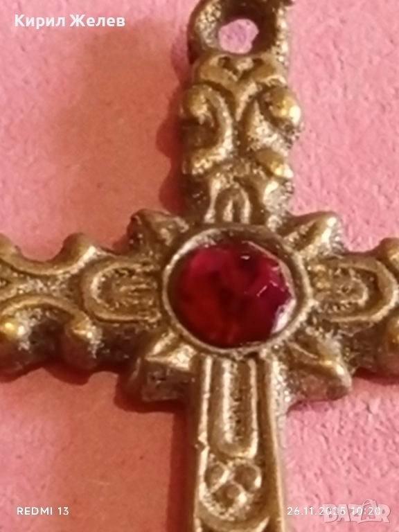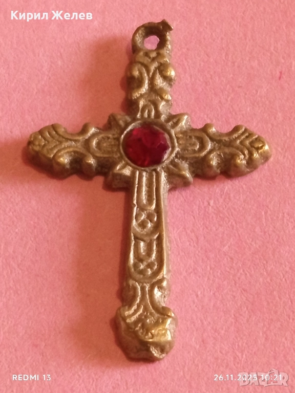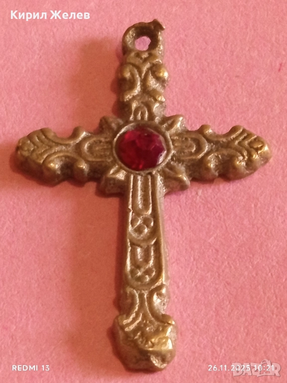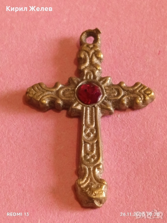 КРАСИВО ОРНАМЕНТИРАН КРЪСТ с КАМЪК РУБИН МНОГО КРАСИВ МОДЕН АКСЕСОАР 26304